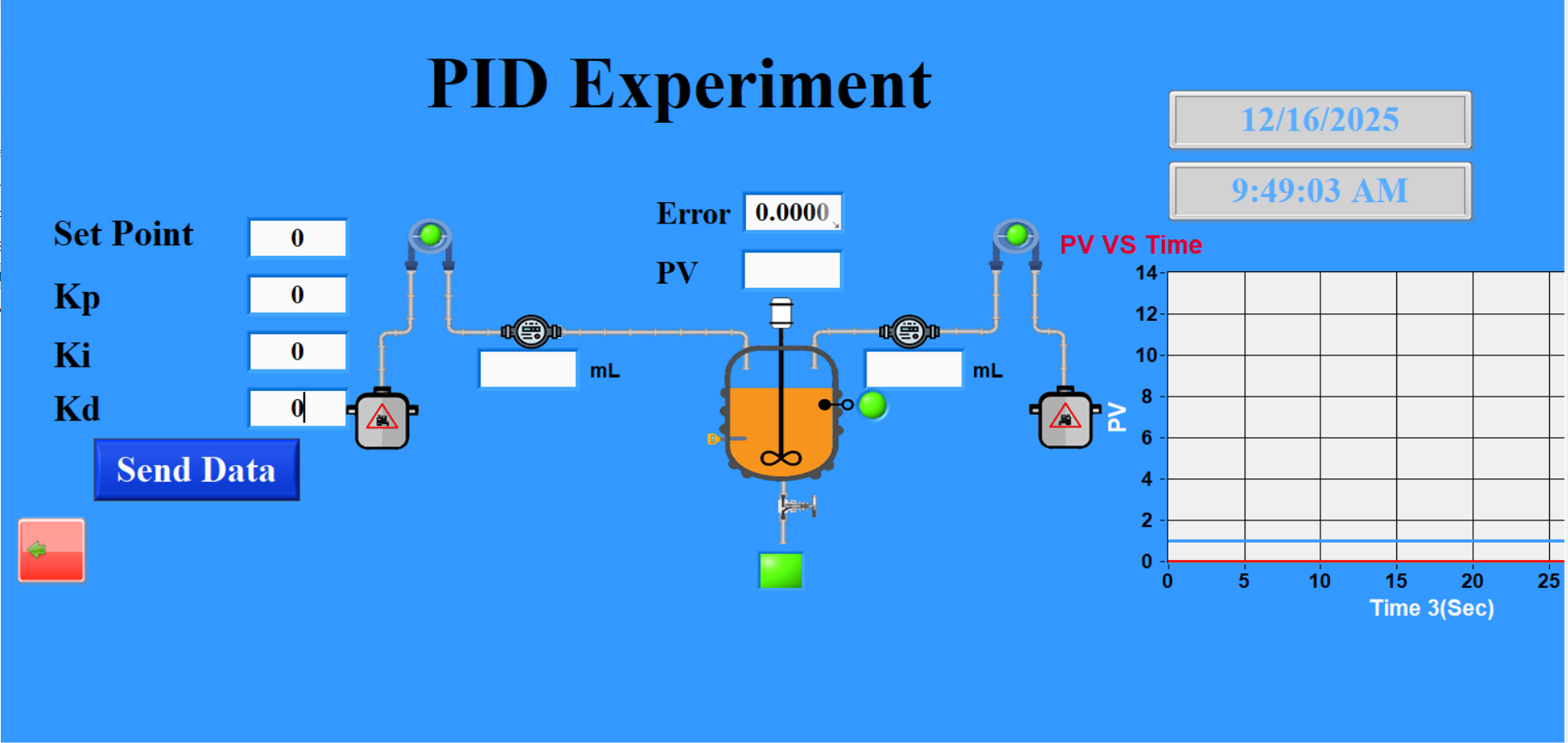 The pH Control Unit is designed to demonstrate practical pH control techniques used in industrial processes. The unit enables two main control experiments: ON/OFF control and PID control. In the ON/OFF control experiment, the system maintains the pH value within a defined range by switching the dosing process on or off, helping users understand basic control behavior and system response. In the PID control experiment, the unit applies proportional, integral, and derivative control to achieve accurate and stable pH regulation, allowing users to study dynamic response, stability, and control performance.