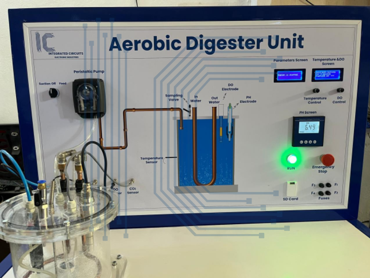 The ICF-WWT-ADT-001 Is Designed To Demonstrate And Analyze The Principles Of Aerobic Digestion In Wastewater Treatment. It Enables Users To Monitor Key Parameters Involved In The Biological Degradation Of Organic Matter By Aerobic Microorganisms. This Bench-scale Unit Features A 1.5-liter Reactor Vessel Equipped With An Internal Tubular Plastic Membrane That Separates Sludge From The Treated Effluent. Wastewater Is Introduced Into The System Using A Peristaltic Pump, Ensuring Precise Flow Control. A Thermostatic Bath Heats Water Up To 60°C, Which Is Circulated Through A Coil Inside The Reactor, Maintaining An Optimal Temperature Range For Microbial Activity. To Support Bacterial Growth, A Compressor Supplies Air Into The Reactor Via A Diffu Sion Plate, Ensuring An Oxygen-rich Environment. For Real-time Monitoring, The Unit Is Equipped With Dissolved Oxygen (DO) And PH Probes With Digital Meters. A Gas Sampling Port Is Integrated Into The Reactor Lid, Allowing For Collection And Analysis Of Gases Generated During The Digestion Process. This Unit Is Ideal For Educational And Research Purposes, Providing A Hands-on Platform For Understanding Biological Wastewater Treatment Under Aerobic Conditions.