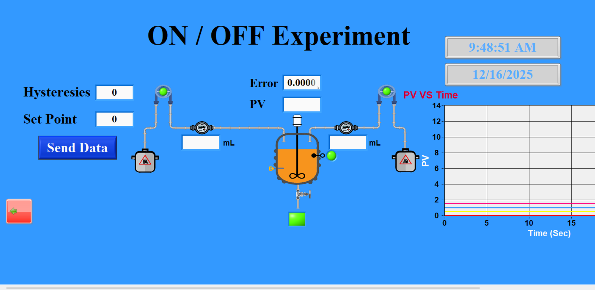 The pH Control Unit is designed to demonstrate practical pH control techniques used in industrial processes. The unit enables two main control experiments: ON/OFF control and PID control. In the ON/OFF control experiment, the system maintains the pH value within a defined range by switching the dosing process on or off, helping users understand basic control behavior and system response. In the PID control experiment, the unit applies proportional, integral, and derivative control to achieve accurate and stable pH regulation, allowing users to study dynamic response, stability, and control performance.